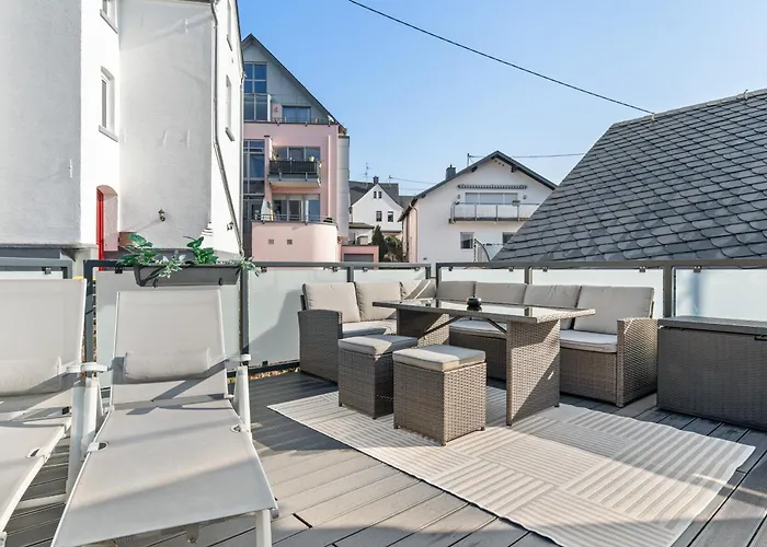 Located nearly a 5-minute drive from Castle Montabaur, the 4-bedroom Homebase Am Schloss - Perfekt Fur Gruppen - 4 Apartments - 1 Haus gives easy access to various tourist attractions in the area. Providing guests with Wi-Fi and a private parking lot, this Montabaur villa is in close proximity to Wolfsturm.